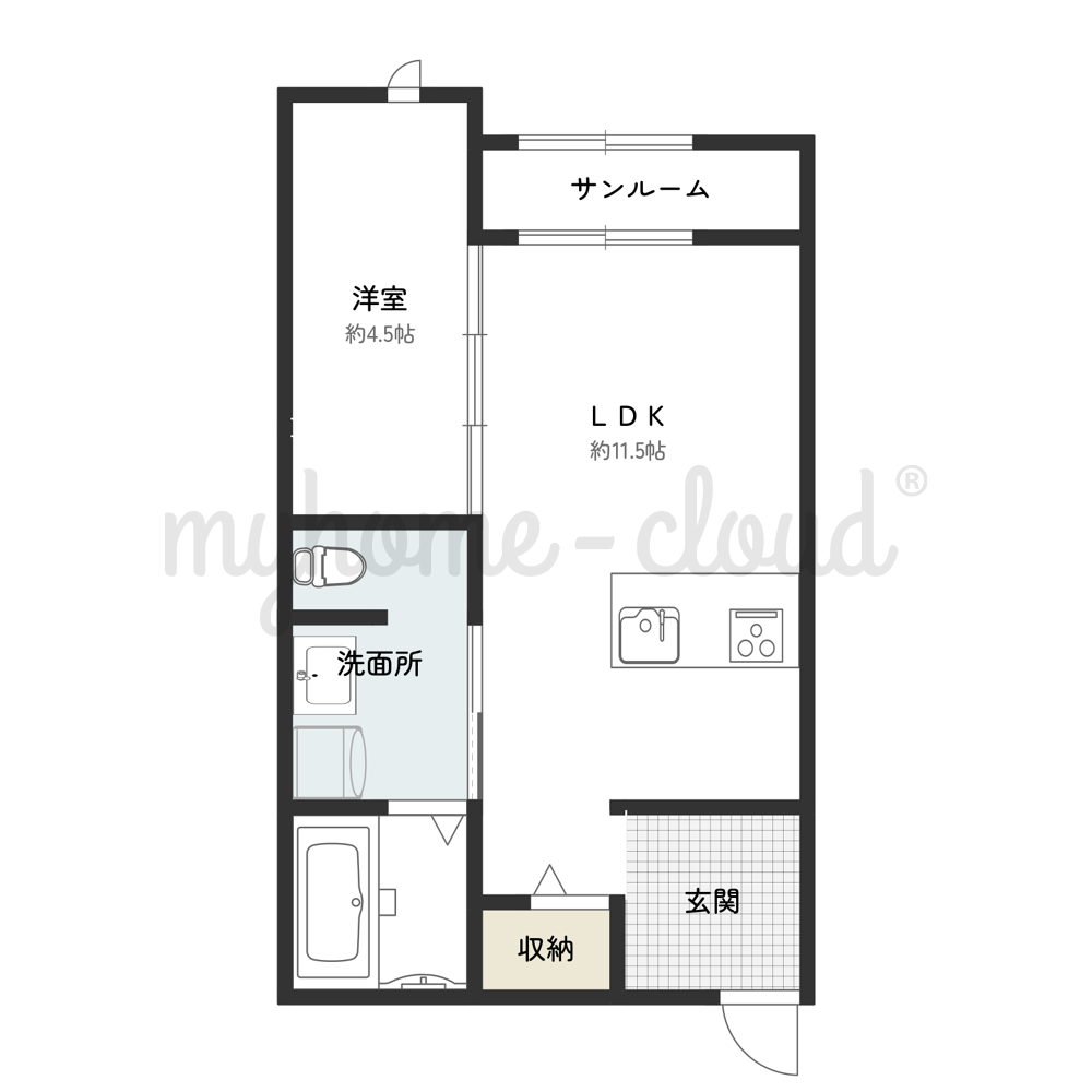 間取1LDK(LDK11.5帖・洋4.5帖・サンルーム) 102/202 同間取り